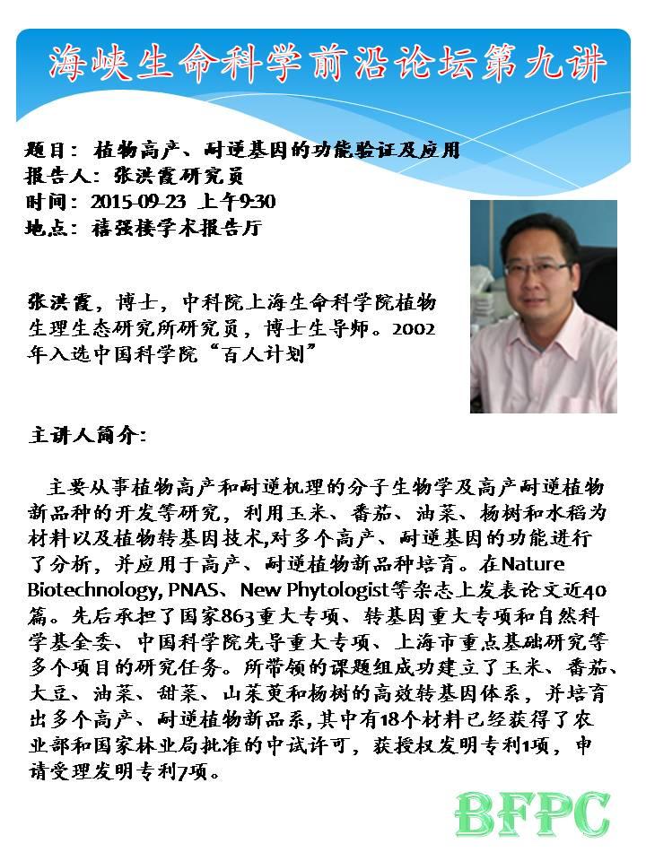 海峡生命科学前沿论坛第九讲(9.23)-植物高产、耐逆基因的功能验证及应用