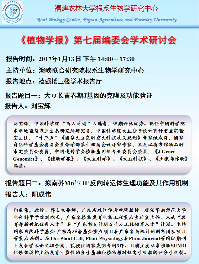 《植物学报》第七届编委会学术研讨会(1.13)-大豆长青春期J基因的克隆及功能验证等