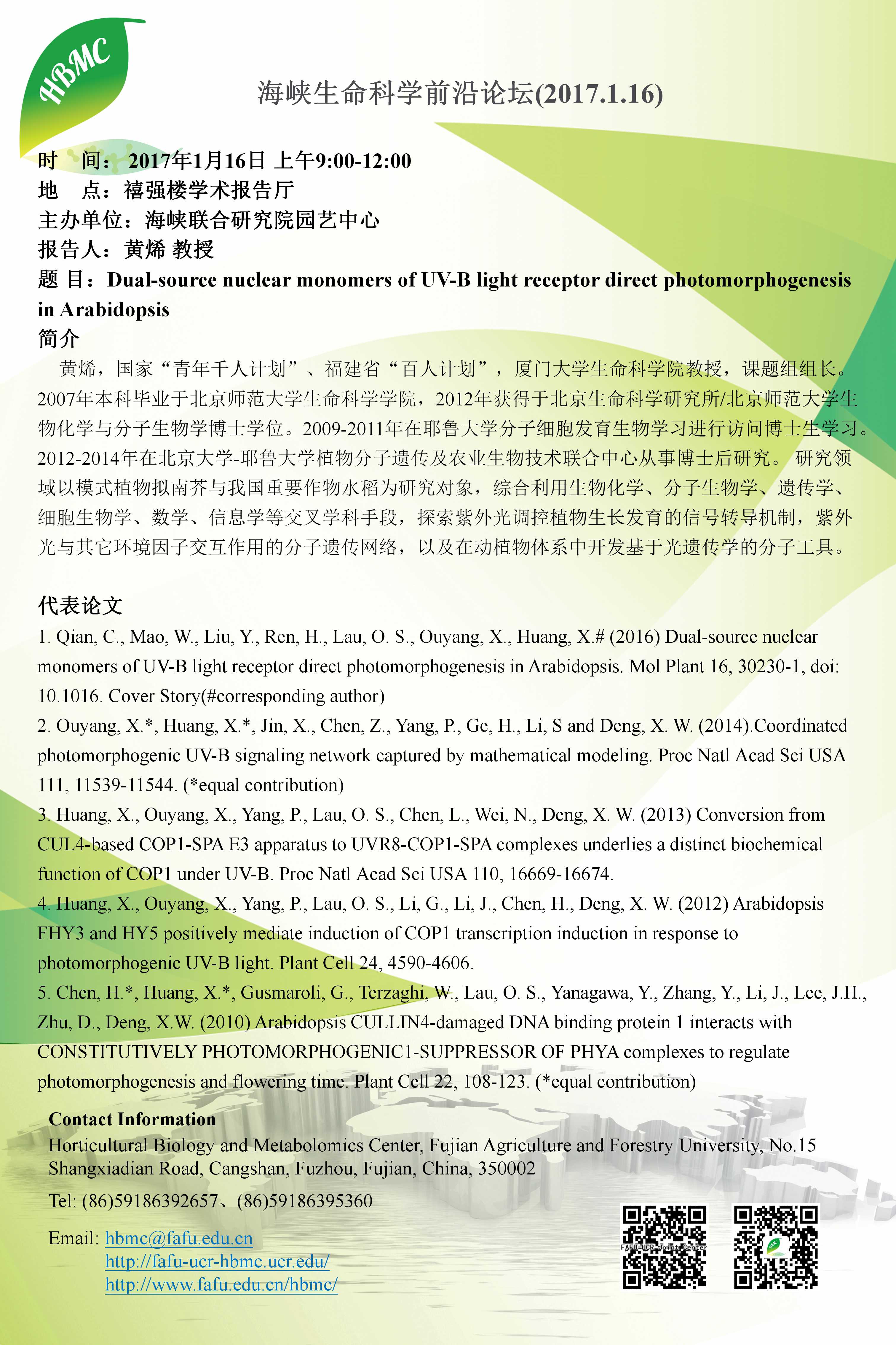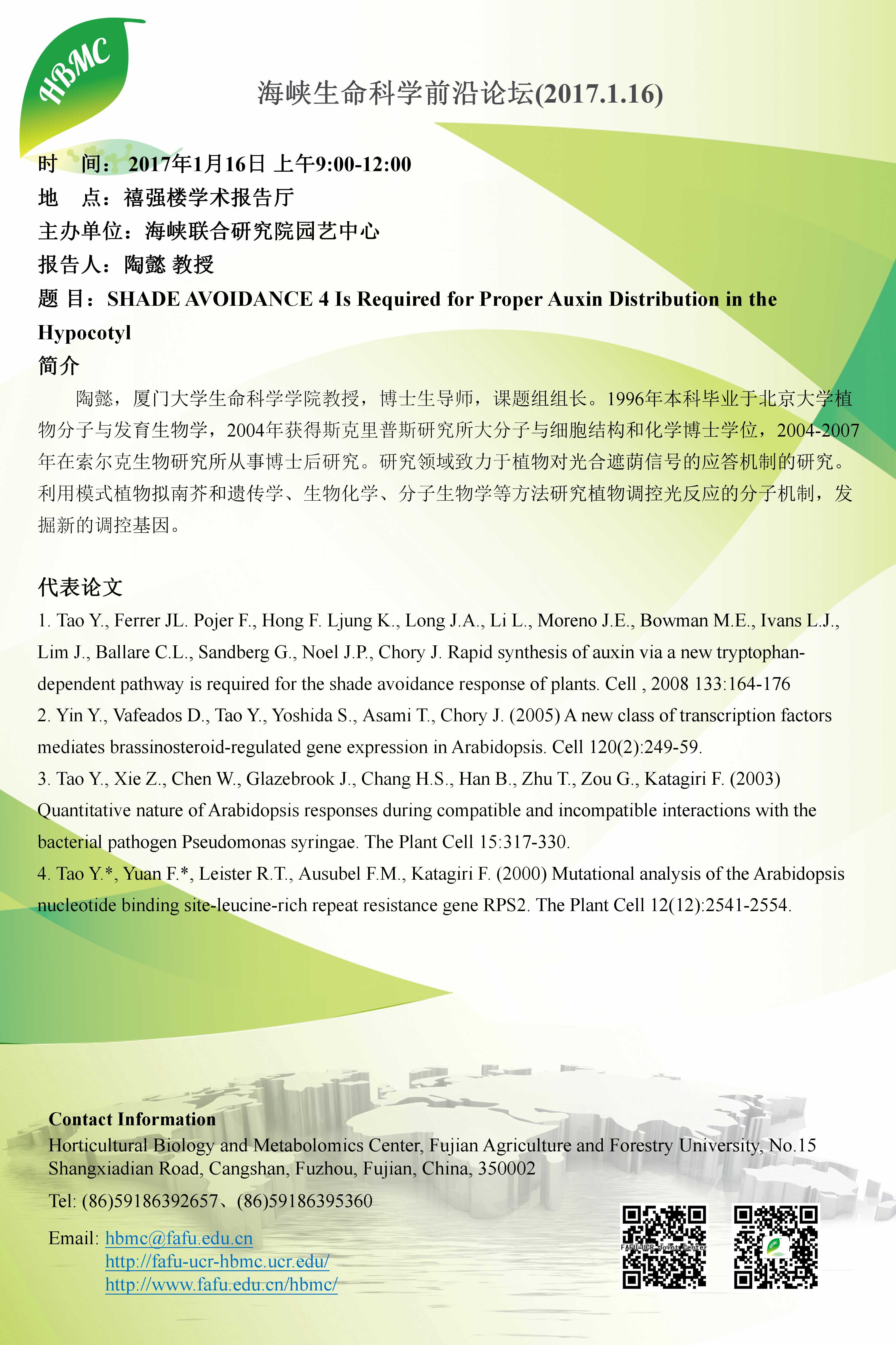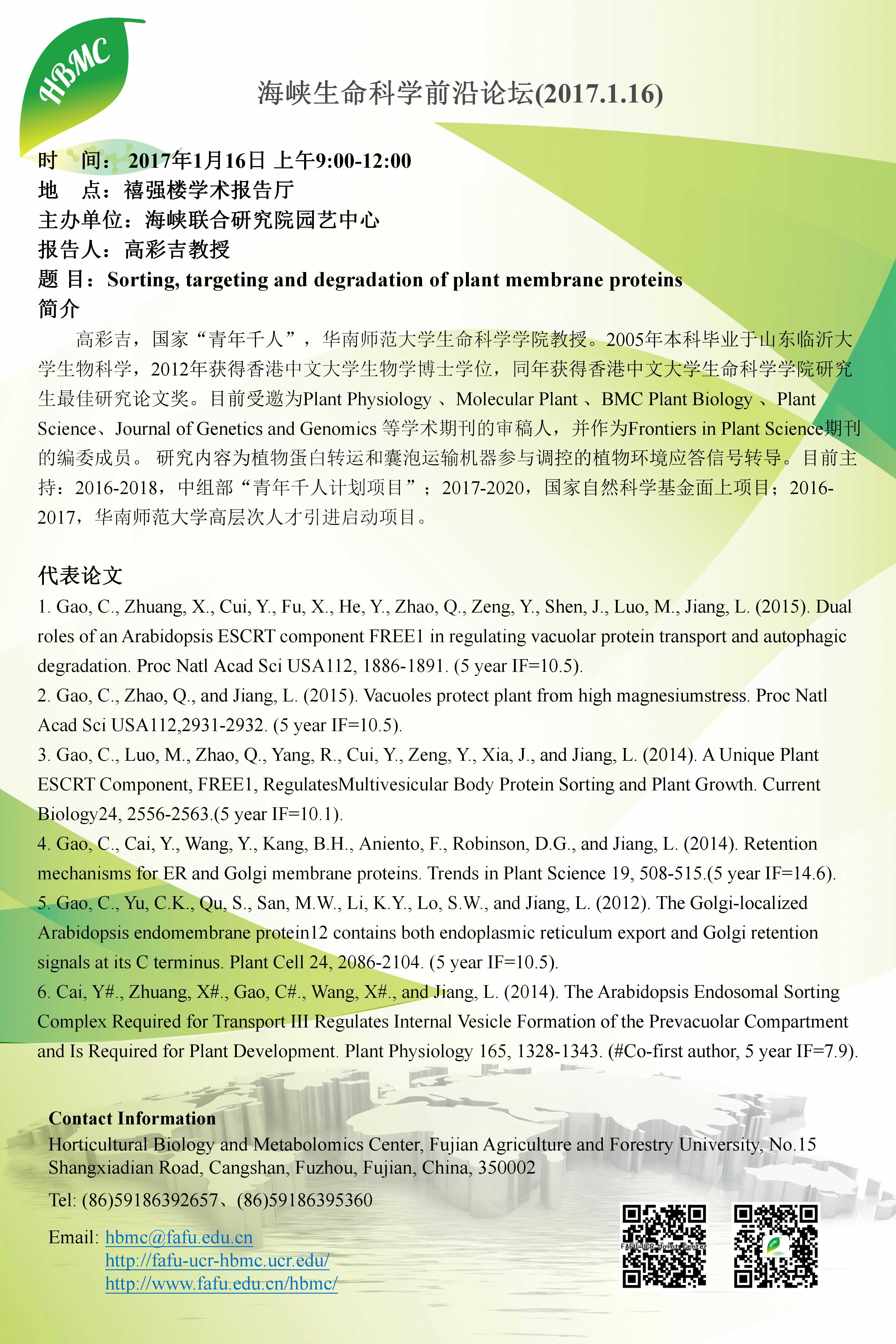 海峡生命科学前沿论坛第五十五讲(2017.1.16)-Sorting, targeting and degradation of plant membrane proteins等