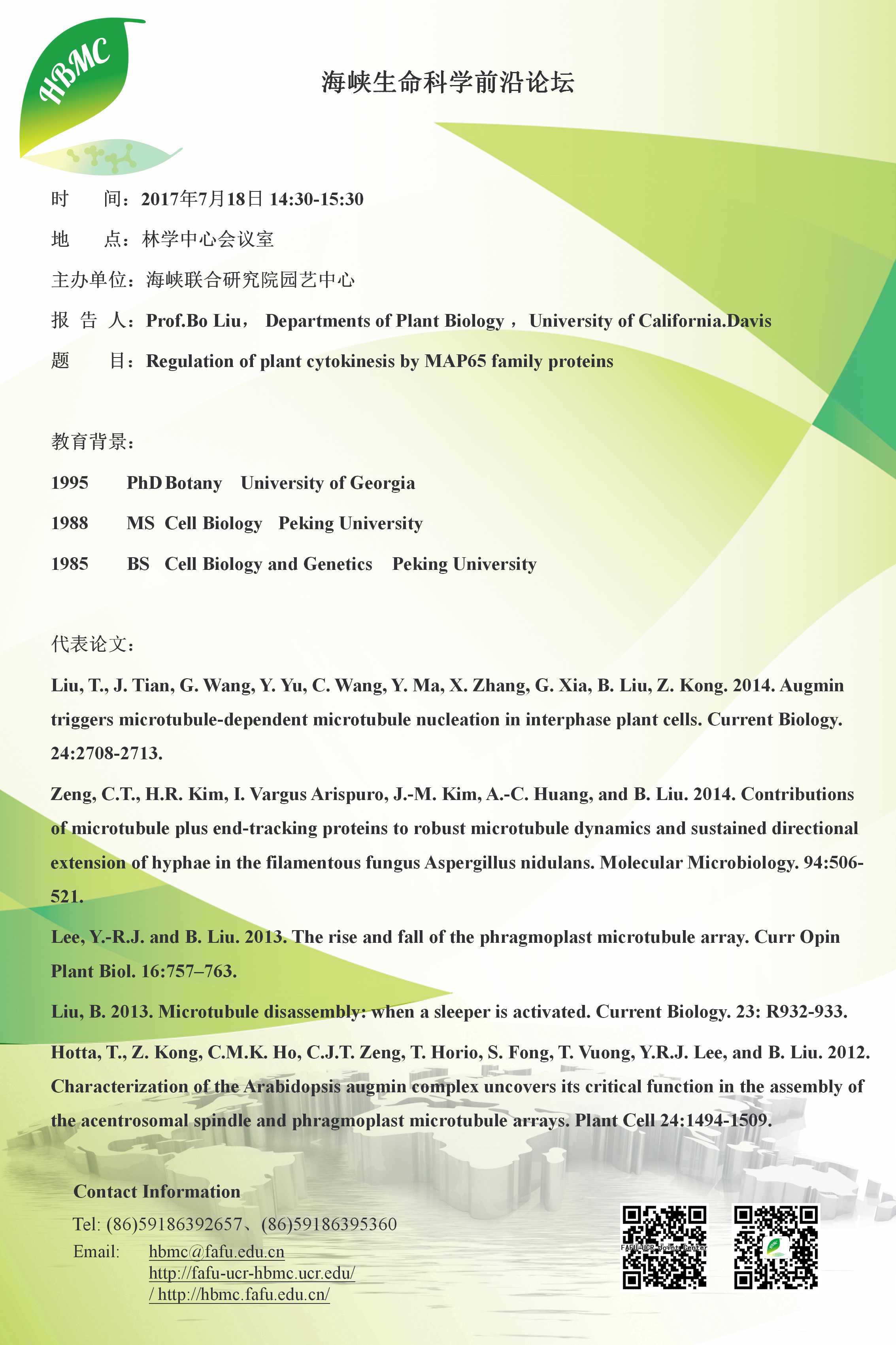 海峡生命科学前沿论坛第六十七讲(2017.7.18)-Regulation of plant cytokinesis by MAP65 family proteins