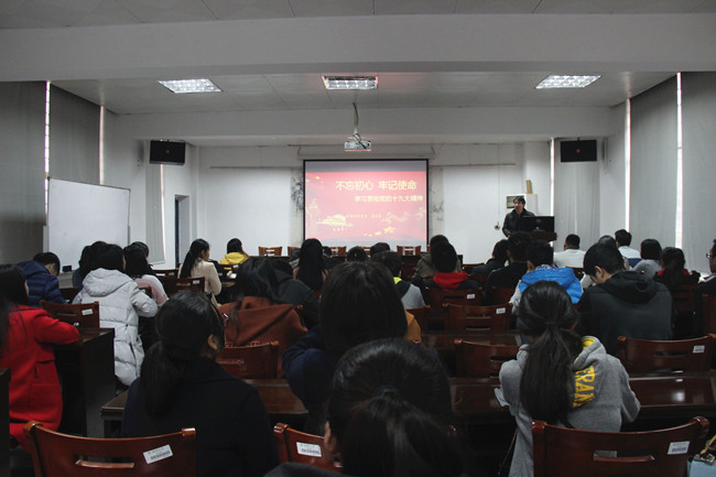 课上,童庆满首先围绕十九大的主题展开讨论,强调全体党员要“不忘初心、牢记使命”;其次,针对“过去五年的工作和历史性变革”、“新时代中国共产党的历史革命”、“新时代中国特色社会主义思想和基本方略”、“决胜全面建成小康社会开启新征程”、“九个方面理论分析和政策指导”等五个方面进行全面解读,特别强调深入推进新时代党的建设新的伟大工程的重要意义;最后,童庆满用“青年兴则国家兴;青年强则国家强”、“大道之行 天下为公”等与大家共勉。