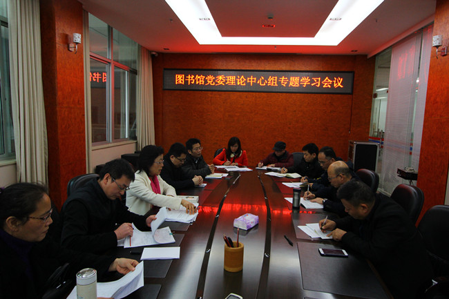 1月4日下午,图书馆党委召开理论中心组专题学习会议,集体学习《习近平谈治国理政》第二卷和习近平总书记关于加强作风建设的重要批示精神,图书馆党委理论中心组成员、科级以上干部、支部书记参加学习会,会议由图书馆党委书记郑美玉主持。