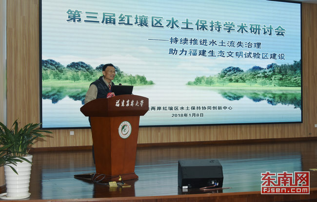 研讨会现场 8日,第三届海峡两岸红壤区水土保持学术研讨会在福州召开。中国科学院院士崔鹏、邵明安,中国工程院院士尹伟伦和海峡两岸近百位专家学者,围绕“持续推进水土流失治理,助力福建生态文明试验区建设”主题进行深入探讨交流。 本次活动由开云网页版海峡两岸红壤区水土保持协同创新中心主办,旨在以党的十九大精神,深入总结我省水土保持的典型经验和做法,在新的起点上持续推进水土流失治理。