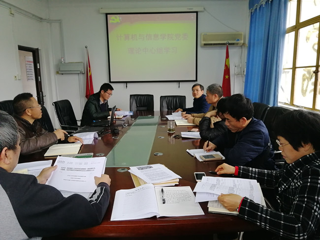 1月8日下午,计算机与信息学院党委召开理论中心组学习会,专题学习《习近平谈治国理政》第二卷、习近平总书记在党的十九大精神研讨班开班式重要讲话、中央政治局民主生活会精神、中央经济工作会议、中央农村工作会议及《中国共产党党务公开条例(试行)》、省委十届五次全会精神,并就贯彻落实工作做出安排部署。会议由学院党委书记陈宜大主持。