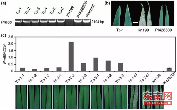 病毒诱导的基因沉默(VIGS)与单细胞瞬时表达和稳定转化实验表明,将其中一个基因赋予小麦对白粉病的抗性,命名为Pm60。在烟草叶片中过表达全长Pm60及两个等位基因变体,可诱导超敏性细胞死亡反应,但仅表达卷曲螺旋结构域不足以诱导超敏反应。而酵母双杂交、双分子荧光互补和荧光素酶互补成像检测表明,Pm60蛋白与其相邻的含NB结构域蛋白质存在相互作用,且它们在功能上可能存在相关性。