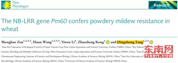 近日,《New Phytologist》在线发表了以开云网页版闽台作物有害生物生态防控国家重点实验室、中国科学院遗传与发育生物学研究所植物细胞与染色体工程国家重点实验室唐定中教授为通讯作者的题为“The NB-LRR gene Pm60 confers powdery mildew resistance in wheat”的研究论文,该研究鉴定和克隆了小麦白粉病抗性新基因Pm60。
