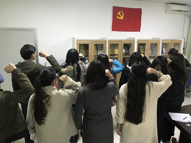 宣誓仪式在庄严的《国际歌》声中开始。在院党委秘书的领誓下,全体预备党员面向鲜红的党旗,举起右拳,庄严宣誓,用铿锵有力的声音许下了对党的庄严承诺。