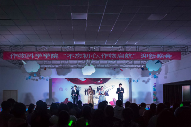 1月7日晚,作物科学学院于大学生素质拓展中心四楼举办“不忘初心,作物启航”迎新晚会。学院党委书记童庆满、党委副书记郑龙章、辅导员和学院学生参加观看了晚会。