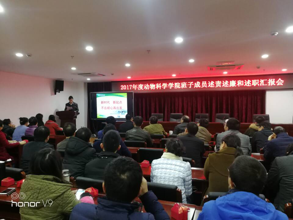 1月11日下午,动物科学学院召开全院教职工大会对五位学院班子成员进行述责述廉和述职考核,校纪委、校党校有关同志莅会指导,学院党委书记池有忠主持会议。