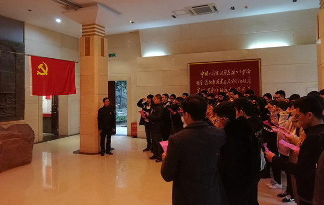 计算机与信息学院党委则通过走进爱国主义教育基地举行新党员入党宣誓,积极引导全体新党员缅怀先烈的丰功伟绩,时刻牢记入党誓词,自觉加强党性锻炼,不断提高党性修养,切实把思想和行动统一到学习贯彻党的十九大精神和学习习近平总书记系列重要讲话精神上来。12月28日,计算机与信息学院组织新党员到全国爱国主义教育示范基地祭扫拜林祥谦烈士陵园,举行学院新党员入党宣誓仪式,一起缅怀革命先烈,走近英雄,走进历史,回首往事。党员们观看了微电影《林祥谦》,并参观了二七烈士纪念堂。随后,全体党员共同瞻仰了林祥谦烈士纪念墓,并敬献了花篮表达了崇敬之情。全体新党员在计算机与信息学院党委副书记的领誓下,共同面对鲜红的党旗,进行了庄严的入党宣誓。此外,计算机与信息学院党委书记陈宜大为学生新党员上了《传承红色基因,牢记入党初心》的党课。他要求新党员要学习林祥谦烈士全心全意为劳苦大众求解放的高贵品质和不惜自我牺牲的革命精神, 始终坚持共产主义理想信念,始终走在时代前列,始终牢记党全心全意为人民服务的宗旨,爱岗敬业、无私奉献。他还希望新党员博学多思、勇于实践,不断充实自己,提升自己,勇敢地为实现“中国梦”做出自己一份努力和贡献。