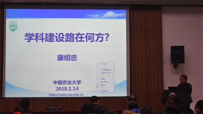 1月14日,中国工程院院士康绍忠应邀莅校进行学科建设指导,并在龙岩厅作题为“学科建设路在何方”的学术讲座。报告由副校长黄炎和主持,机电工程学院领导、部分教师,校各院研究生、留学生参加了此次讲座。