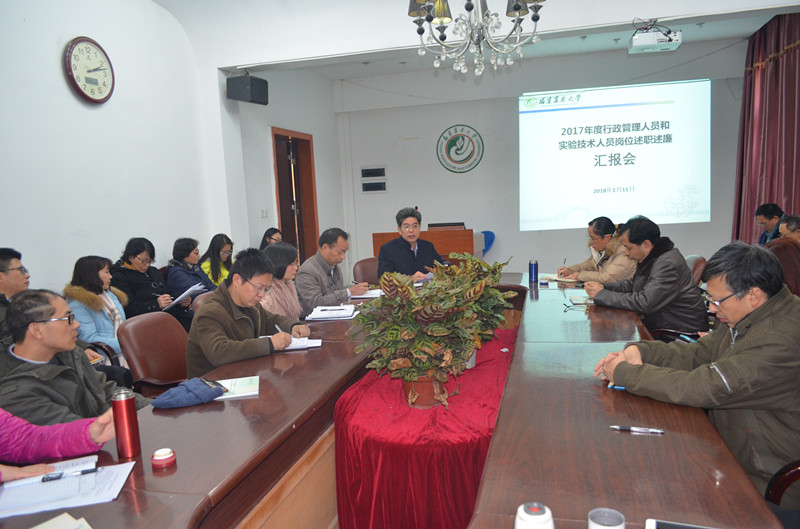 1月11日,园艺学院召开2017年度行政管理人员和实验技术人员述职述廉汇报会。学院党政班子成员、全体教职工参加了会议。
