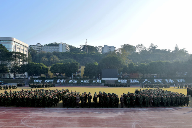 1月12日,我校2016级大学生军训于我校北区田径场拉开帷幕。艺术学院园林学院2016级全体同学着装统一,以饱满的情绪积极投身训练之中。