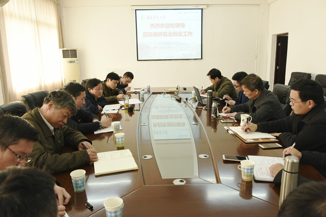 1月17日上午,校长兰思仁、校党委副书记曾华平到机电工程学院、作物科学学院调研,深入了解学院促进毕业生就业创业工作的做法和进展,围绕当前影响工作推进的重要瓶颈,进行深入探讨交流,共同谋划问题解决办法。