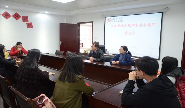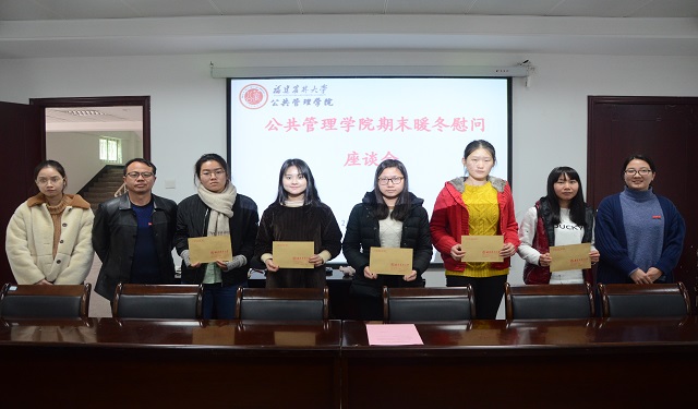 1月17日下午,公共管理学院期末暖冬慰问座谈会于公管楼205召开。学院党委副书记陈建辉、辅导员及受慰问学生参加本次座谈会。