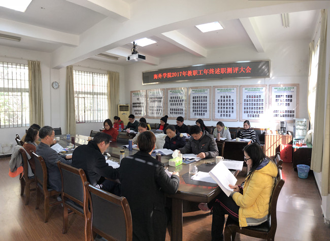 1月11日上午,海外学院在305会议室召开2017年度校中层干部述责述廉和述职考核工作会议,学院全体教职工参加会议,校党委组织部工作组莅会指导,党委书记罗志雄主持会议。