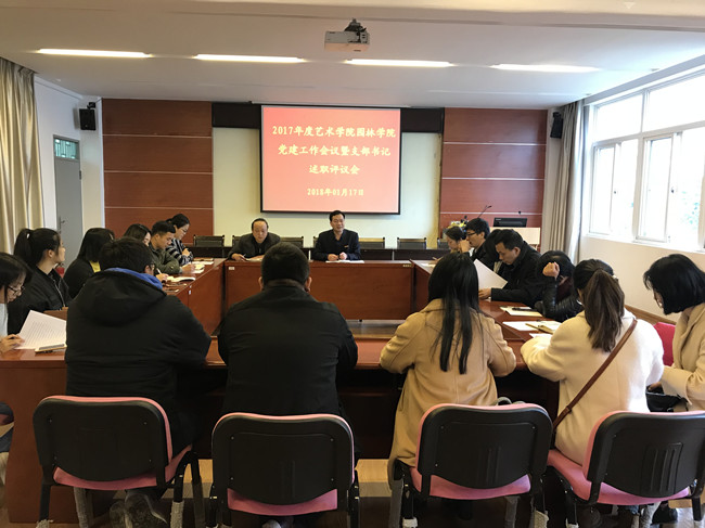 1月17日下午,艺术学院园林学院在综南附302会议室召开党建工作会议暨2017年度支部书记述职评议会。会议由院党委书记陈为德主持,院党委副书记曹伟以及学院师生党支部书记共计19人参加。