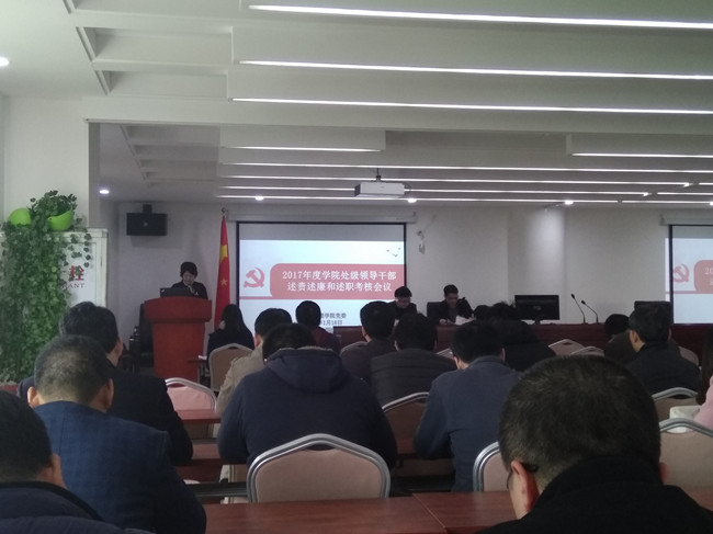 1月18日下午,公共管理学院党委组织召开2017年度学院处级干部述责述廉和述职考核会议,校党委组织部工作组莅会指导,学院全体教职工参加会议,院党委书记曾起郁主持会议。