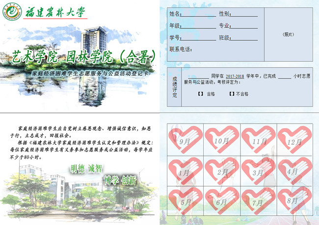 《艺术学院 园林学院家庭经济困难学生志愿服务与公益活动登记卡》