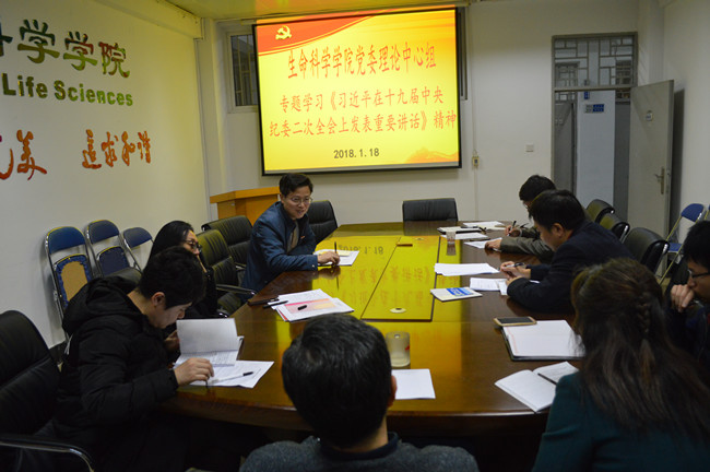 1月18日下午,生命科学学院党委理论中心组召开学习会,专题学习习近平总书记“1.5”重要讲话和十九届中纪委二次全会精神。会议由院党委书记林豪森主持。