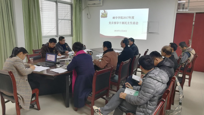 1月24日上午,蜂学学院党委召开以“认真学习领会习近平新时代中国特色社会主义思想,坚定维护以习近平同志为核心的党中央权威和集中统一领导,全面贯彻落实党的十九大各项决策部署”为主题的党委班子民主生活会。院党委班子成员参会,科级干部、系主任、支部书记、工会主席列席会议。会议由院党委书记张开晃主持,校第2督导组副组长、校党委办公室(校办公室)副主任沈锐强及校保卫处(人民武装部)办公室主任黄锦湖莅会指导。