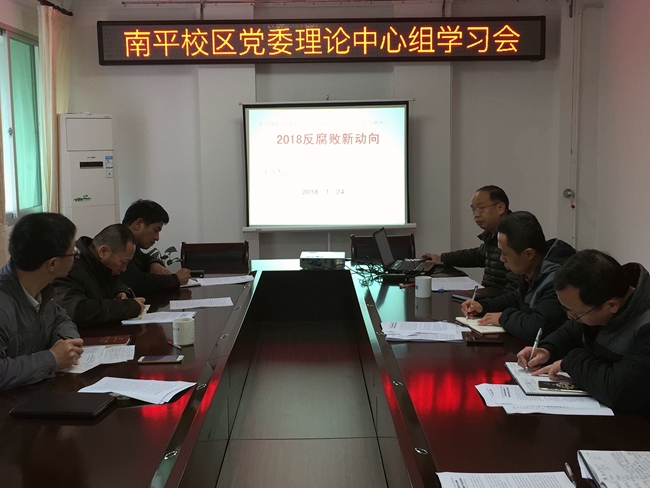 1月24日下午,南平校区党委召开理论中心组学习会,专题学习习近平总书记“1.5”重要讲话和十九届中纪委二次全会精神。会议由校区党委书记洪诚主持。