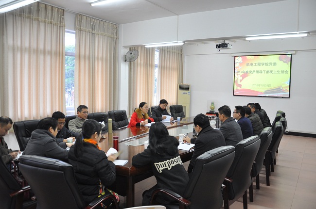 1月25日上午,机电工程学院召开2017年度党员领导干部民主生活会,校监察处副处长刘鸿,校办杨丛霖同志到会指导,会议由学院党委书记陈辉主持,院领导班子、党委委员、各系正副主任及院科级以上干部20余人参加了会议。