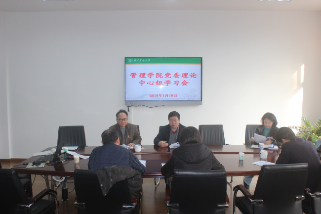 1月18日下午,管理学院党委召开2018年度第一次理论中心组学习会,专题学习习近平总书记“1·5”重要讲话和十九届中纪委二次全会精神,学院党委委员参加了学习会,会议由学院党委书记谢志鸣主持。