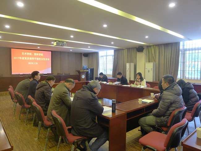 1月26日上午,艺术学院园林学院党委在综南附307会议室召开2017年度党员领导干部民主生活会。学院党员领导干部参加会议,学院党委委员、科级干部、系(中心)正副主任、工会主席共22人列席。会议由院党委书记陈为德主持。校党委常委、纪委书记邱应龙、校第4督导组组长宣传部部长江潮炳、校纪委办公室主任李玉峰三位同志莅临指导。