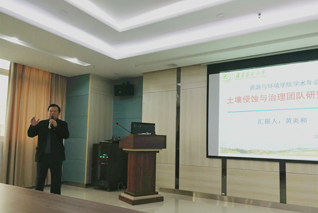 1月27日-28日,资源与环境学院举办高峰高原学科推进会暨2017年度团队建设年终总结大会,学院党政领导、海峡联合研究院根系生物学中心、国际镁营养研究所、学院全体教职员工出席大会,校党委常委、副校长黄炎和,海峡联合研究院根系生物学中心主任、党的十九大代表廖红教授应邀出席,报告会由学院院长周顺桂主持。