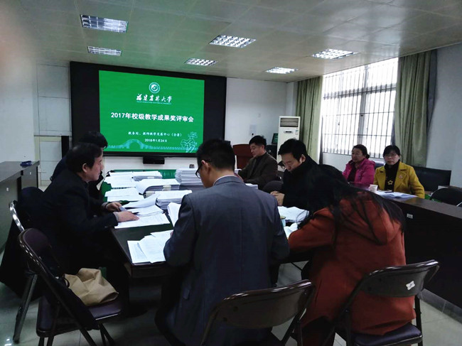 1月24日,我校在明德楼312室举行2017年校级本科教育类教学成果奖评审会,邀请5位省外评委专家进行现场评审。评审会由教务处副处长主持。整个评审过程有3位校教学指导专门委员会委员代表全程参与观摩。