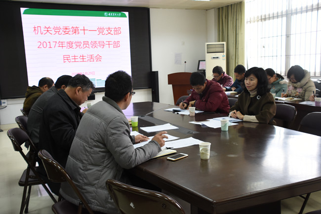 1月29日上午,机关党委第十一党支部(教务处)在明德楼312召开2017年度党员领导干部民主生活会。校第7督导组副组长、经济学院党委副书记陈玲凤和机电工程学院团委副书记叶善斌莅会督查指导。会议由机关党委第十一党支部书记、教务处处长吴祖建主持,教务处中层以上党员领导干部、党外中层以上领导干部以及科级干部参加会议。