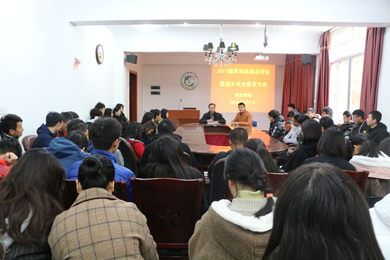 2月1日上午,园艺学院在园艺楼一楼会议室召开2017级本科生军训总结点评会暨返乡安全教育大会,院党委副书记张文元、2017级本科生辅导员以及2017级全体本科生共202人参加会议。