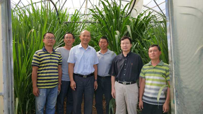 孙祥华大使(右二)、马国良参赞(左三)察看基地菌草圃