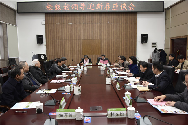 2月2日上午,我校在明德楼武夷厅召开校级老领导迎新春座谈会。校党委书记叶辉玲、校长兰思仁、校党委副书记庄祥生、校纪委书记邱应龙与校级老领导们欢聚一堂,喜迎新春,共叙发展。座谈会由庄祥生副书记主持。