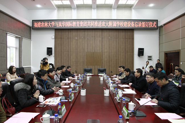 庄祥生副书记代表学校感谢岚华国际教育集团对共同推进附属学校建设所作的努力,对今后实质性推动办学各项准备事宜提出了希望,希望双方进一步细化工作任务,在提升师资整体水平、教育教学质量和校园文化等方面加大力度,真心真做,真抓实干,努力朝着既定的办学目标完善机制体制、凝练办学特色、打造办学品牌。练晓荣副校长指出,此次筹建附属学校,要根据建设省级示范性学校的目标,发挥双方的办学优势,加快建设步伐,通过对校舍进行改造、引进高水平学科带头人和骨干教师等,进一步加强内部的管理,不断地改善办学条件,提升办学水平和教学质量,我校将在政策、资金等方面对附属学校建设给予支持。林性标董事长表示,岚华国际教育集团将按照与我校确立的发展目标,立即着手开展筹建工作,全面加大投入力度,稳步提升软硬件设施,以此次合作为契机,以2018年9月首批农林大学教职工子女入学为目标,确保入学子女享受优质教育资源,努力将附属学校建设成为“平安、文明、书香、优美”的幸福校园,办成开云网页版教职员工和群众满意的优质学校。