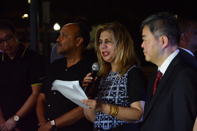 德班市副市长法齐娅·皮尔(Fawzia Peer)致辞,表示很高兴能够以点亮市政厅的方式,为中国人民送上来自南非的新春祝福。广东省与夸祖鲁纳塔尔省在2016年成为友好省,广州市与德班市又是多年的友城关系,双方在经贸和人文等方面的交流近年来越来越多,彼此共同向前发展进步是时代的要求。中国春节是中国最大的传统节日之一,这是一个南非人民了解中国节日文化,感受节日氛围的好机会,中南文化的发展更离不开每一次的交流与合作。她还特别感谢了德班理工大学孔子学院为推动中国文化走进南非,搭建中南文化交流平台所做的重要贡献。