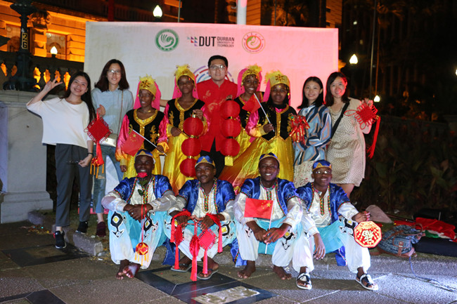 市政厅门口红灯笼高高挂起,布置得一片喜庆祥和。开场舞在激昂的非洲鼓声与欢快的祖鲁舞蹈中拉开序幕。来自德班的数十位当地舞者为大家带来了祖鲁传统舞蹈,用这种常在祖鲁族节日盛典跳起的传统舞蹈来表达喜悦与欢欣之情,在祖鲁文化的舞蹈表现形式中为中国人民献上了诚挚的新春祝福。