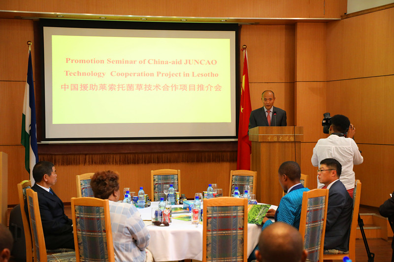 2月9日,中国驻莱索托使馆举办中国援莱菌草技术合作项目推介会,孙祥华大使、宋常清政务参赞、马国良经商参赞、莱小企业大臣波里、农业代大臣马夸伊、农业部常秘恩查卡、小企业部常秘佩卡内、莱外交部、发展计划部等相关政府部门官员、当地及华侨华人农户代表及主流媒体等80余人出席。