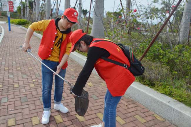 经济学院青年志愿者服务部组织志愿者前往西门进行美化校园的清扫活动。志愿者们相互协作,合理分工,充分利用清理工具,清扫了道路两旁的花坛以及喷泉边上的垃圾,有序而高效地完成了清扫工作,对于校园内无序停放的共享单车也进行了统一的整理和排序。