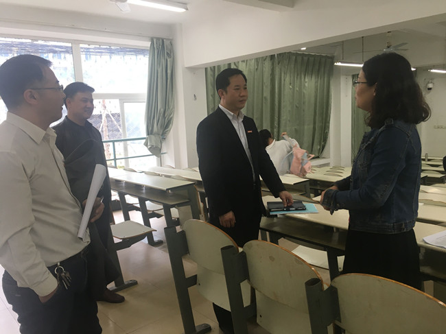 黄炎和副校长带领校办、后勤处、校团委、教务处等职能部门深入教学楼,通过观看课堂教学监控系统和实地巡查,对教师授课、学生学习、课堂教学秩序、教学设施运行等开展情况进行了全面细致的检查,对进一步完善教学保障条件提出了要求。