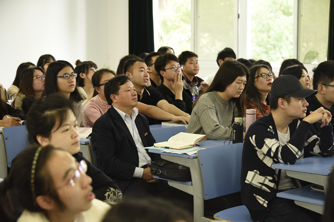 在金山校区,兰思仁校长走进田家炳楼207教室听取了马克思主义学院邓龙九老师为2015级风景园林与园林专业同学讲授的《马克思主义基本原理概论》,并认真做了听课记录。从听课情况来看,授课教师准备充分,学生精神状态饱满,课堂气氛活跃。