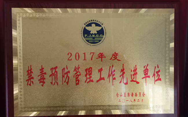 “仓山区2017年度禁毒预防管理工作先进单位”奖牌