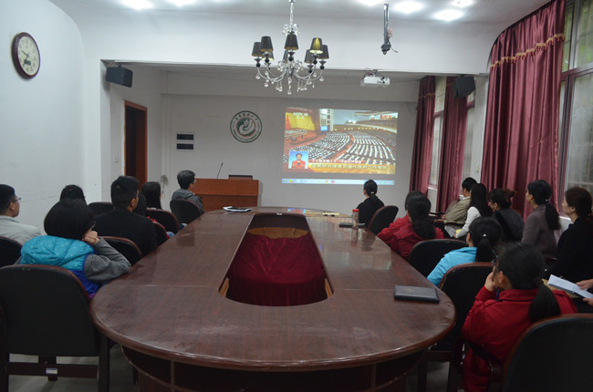 院领导和行政人员在学院一楼会议室全程观看和聆听了国务院总理李克强作的政府工作报告。会后,大家一致认为十三届人大一次会议是党的十九大之后召开的又一重大盛会,纷纷表示一定要以习近平新时代中国特色社会主义思想为指导,全面贯彻落实党的十九大精神,紧紧围绕政府工作报告,聚焦我校双一流建设目标,结合学院实际认真谋划2018年的各项工作。