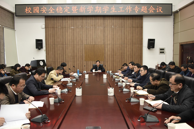 3月7日下午,我校在明德楼武夷厅召开校园安全稳定暨新学期学生工作专题会议。校党委副书记曾华平主持会议并讲话,办公室、学工部、宣传部、保卫处、校团委、后勤处等相关职能部门负责人及各学院党委副书记参加会议。