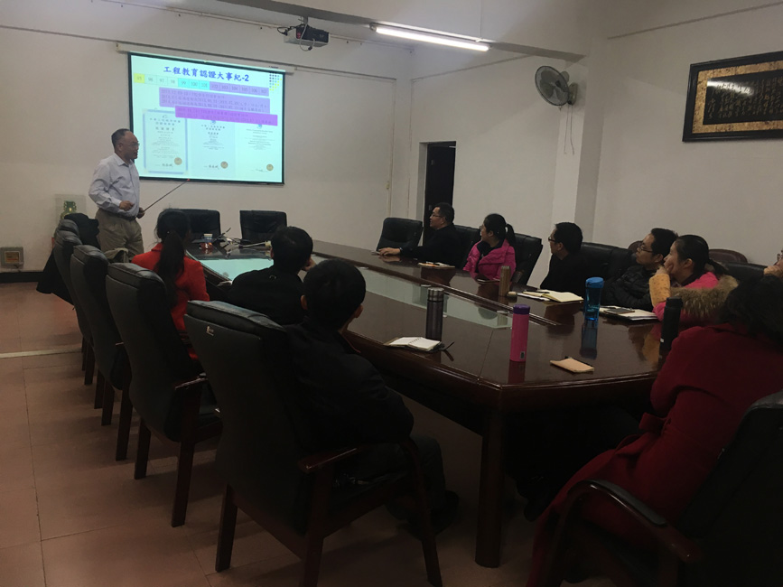 在此期间,范光蕘应学院邀请于3月8日在机电楼3楼会议室还为学院机械系和电科系教师举行了IEET工程教育认证专题交流会,范光蕘详细介绍了台湾中兴大学参加IEET认证的有益经验和先进的人才培养理念,积极回答与会老师提出的各种问题,也为老师们介绍了个人科研的一些经验。本次交流是学院在闽台项目中实质性利用台湾教学资源提升合作办学内涵的一个重要举措,本次交流得到校教务处的大力支持。