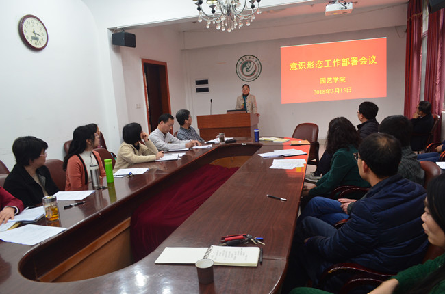 3月15日下午,园艺学院在一楼会议室召开新学期工作会议,认真传达学习学校学科建设推进会暨新学期工作会议精神,结合学院工作实际部署落实学院学科建设推进工作,学校全面从严治党和意识形态工作,部署学院新学期工作任务。会议由院党委副书记张文元主持。