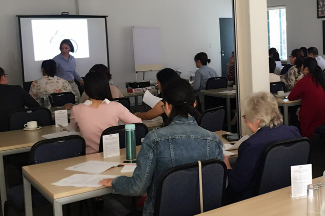 IEB高考汉语科目评估专家罗宾·莫厄特(Robyn Mowatt)为教师们讲解了南非基础教育部把汉语作为高考第二外语考试科目的评价准则,针对评价方式、各类题型、答题要求、评分标准等方面做了详细说明。南非基础教育部汉语顾问兰晓明博士则分别从汉语作为南非第二外语课程背景、南非新国家课程及评估政策声明(CAPS)下的汉语教学,以及汉语作为第二外语课程在南非各学校的执行情况三个部分介绍了南非学校汉语教学情况。汉语高考试卷主考官宋晓婧和付淑英老师就第一部分阅读和第二部分写作进行了样卷分析,将题型设计思路、选材及答题要求等做了一一解析,为各高中参会教师提供了汉语教学指导和考试工作指南。随后,参会教师对存疑之处提出问题进行讨论,并就专家的发言给出了一些自己的建议,现场讨论气氛热烈。
