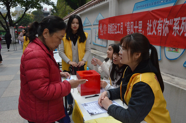 为迎接国际社工日,3月17日,广爱社会工作服务中心开展社工文化节系列活动之“十里春风,社义有你”游园志愿活动,公共管理学院青年志愿者协会组织志愿者参与。