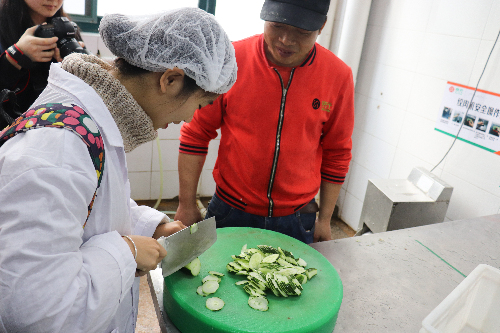3月14日,报名参加后厨体验的学生来到农林大第八食堂,在工作人员的带领下,分成后厨切菜、柜台打菜、买单收银和维持秩序4个组,在不同的工位上亲身体验了一把“食堂阿姨”的角色。切菜组的同学们穿上消毒服装,戴上口罩,深入后厨内部,从洗菜、切菜到把握配料用量,亲身参与到备菜工作中。期间,工作人员不断向同学们强调:“保证第一手接触食物时的卫生是保证食物安全的基础。”